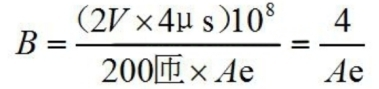 現(xiàn)在咱們來看磁芯,假定二極管是一般的一般的二極管,通態(tài)電壓大約為1V,電流為10A/200=50mA。互感器輸出電壓為1V,加上二極管的通態(tài)電壓1V,總電壓大約2V250kHz頻率作業(yè)時,磁芯上的磁感應(yīng)強度不會跨越